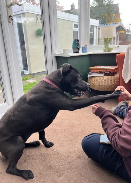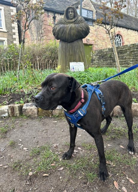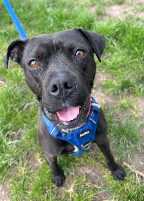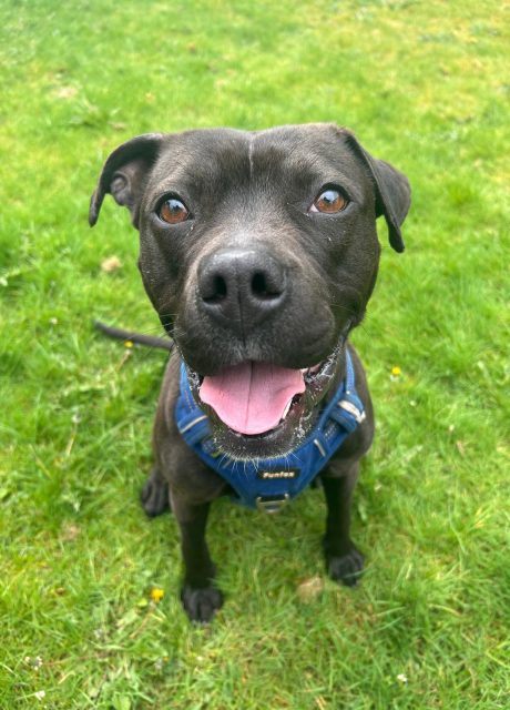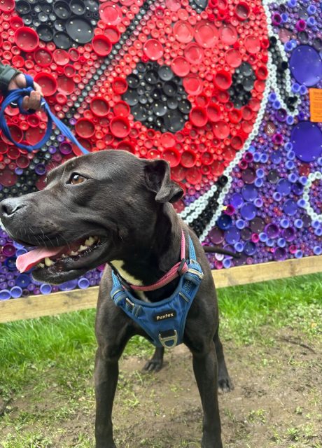 Kona is a two-year-old female Staffordshire Bull Terrier crossbreed. She is about the size of a small Labrador and is a firm favorite with all of our dog walkers. She is such a gorgeous-natured girl. When she first arrived, she was a tiny bit nervous being in a new environment, but it didn’t take her long to come out of her shell.